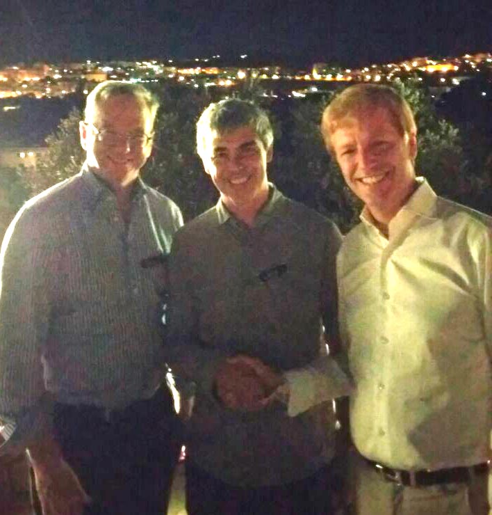 Nella foto il sindaco Lillo Firetto con al centro Larry Page fondatore di Google e a sinistra Eric Schmidt, amministratore delegato Google.