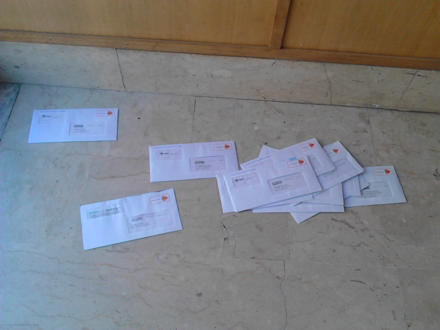 Il portalettere , invece di recapitare la corrispondenza nelle cassette della posta ha preferito gettarle tutte per terra .