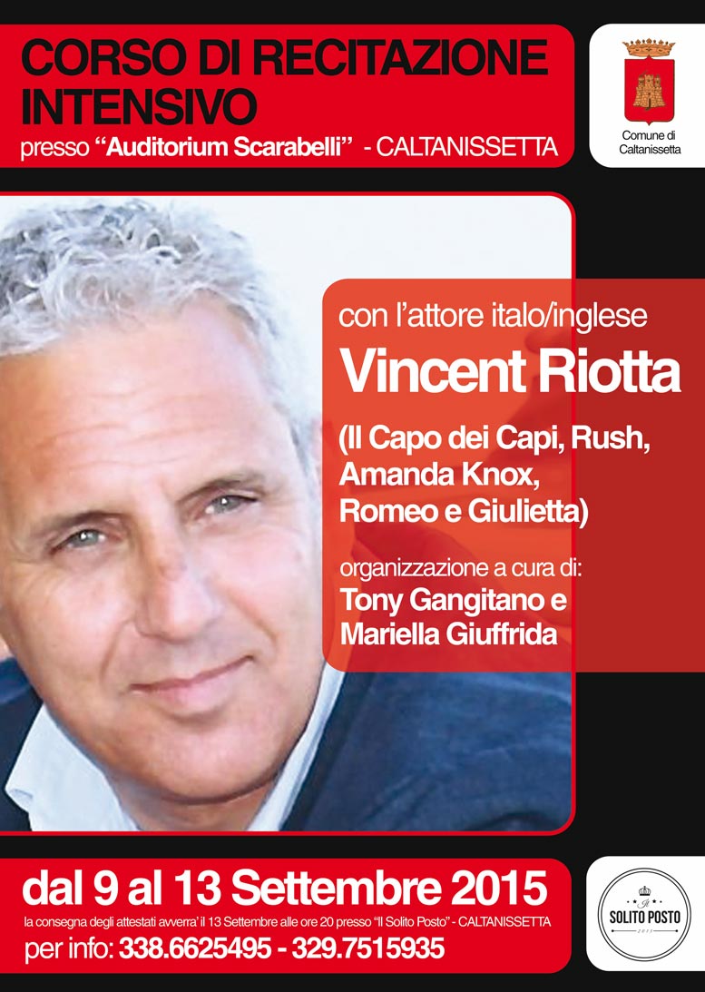 Corso intensivo di recitazione dal 9 al 13 settembre prossimo alla biblioteca Scarabelli di Caltanissetta. Il seminario, patrocinato dal Comune nisseno, sarà tenuto dall’attore italo-inglese Vincent Riotta, protagonista di numerose pellicole e fiction come “Il capo dei capi” dove vestiva i panni di Tommaso Buscetta. Ai partecipanti al corso, organizzato dal regista e attore Tony Gangitano e dall’attrice Mariella Giuffrida, sarà rilasciato un attestato di partecipazione, che sarà consegnato nel corso di una serata in programma il 13 settembre, alle 20, a il “Solito Posto” di via Santo Spirito. <<Si tratta – spiega Gangitano – di un corso specifico per la recitazione cinematografica aperto sia ai principianti, sia a chi ha già qualche esperienza sul set. Vincent ha un modo straordinario di condurre questi stage e lavora molto, oltre che sulla respirazione e sulla voce, anche sull’improvvisazione utilizzando tecniche molto efficaci. Da aggiungere – conclude il regista nisseno – che lo stesso Riotta realizzerà dei video delle performance dei partecipanti, che saranno visionati da una casting director di un importante casa di produzione, ma potranno anche essere utilizzati come videopresentazione degli aspiranti attori>>. Le iscrizioni sono aperte sino a mercoledì 3 settembre. Per informazioni è possibile contattare i numeri 338.6625495 o 329.7515935.