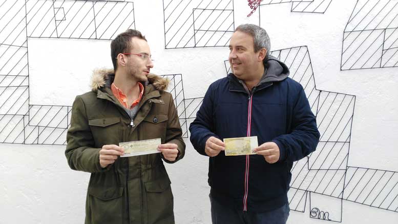 In foto, da sinistra: Mr. Richichi con l’assegno da 500 euro e il notaio Bartoli con la banconota da 200 euro appena comprata.