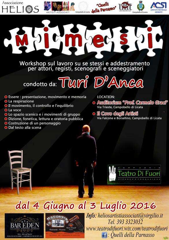 Sabato 4 giugno presso l’auditorium “prof. Carmelo Graci” di Campobello di Licata, avrà inizio il corso di formazione “Mimesi”.