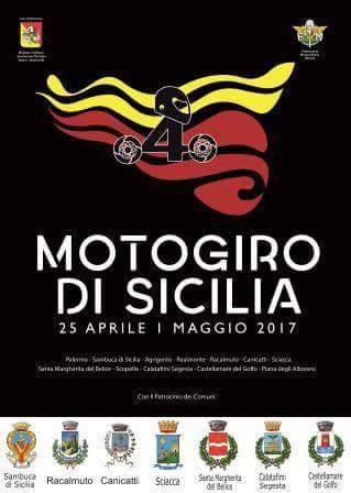 l motogiro di Sicilia, è un evento motociclistico di livello nazionale, organizzato da Moto Club del Tirreno (A.s.d. affiliata alla Federazione Motociclistica Italiana ed al C.O.N.I., Presidente Giuseppe Rundo) e vedra’ il nostro Club Ruote libere Motoclub Canicattì(Presidente Alessandro Magni)a far da guida nella provincia di Agrigento ( Sambuca di Sicilia, Racalmuto, Sciacca e nello specifico nella nostra cittadina: Canicattì). La citata manifestazione ha una duplice valenza , turistico sportiva e di promozione del territorio siciliano e annovera partecipanti provenienti da tutta Italia e dall’ estero. 1)Verrà predisposta un’area di sosta dei partecipanti, in Piazza Dante 2)Una visita guidata delle attrattive della nostra città 3)intorno alle 20.30 un rinfresco per i partecipanti, con assaggio dei dolci tipici del territorio.