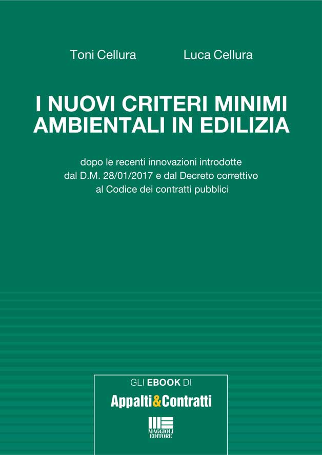 Il nuovo Decreto del Ministero dell’Ambiente sui CAM Edilizia aggiorna la disciplina dei Criteri Minimi Ambientali, che si applica a tutti gli appalti pubblici di nuova costruzione, ristrutturazione, manutenzione degli edifici e gestione dei cantieri. Questo è il tema trattato nel libro pubblicato dalla Maggioli e scritto da Toni Cellura e dal figlio Luca Cellura.
