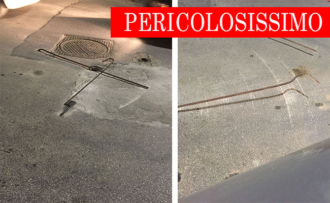 Segnalata una situazione di pericolo tra via Nuoro e la via Diaz, dei tondini di ferro fuoriescono dall’asfalto, magari frutto di un intervento fatto e lasciato lì come spesso si è soliti fare. Unnostro lettore ce lo ha segnalato e noi giriamo la segnalazione al comando dei vigili urbani e alle autorità preposte ad intervenire per evitare che qualcuno si possa seriamente ferire. Non abbiamo ancora capito che eventuali danni ai cittadini oltre che costituire un pericolo per la incolumità degli stessi rappresentano un onere per le tasche del comune e quindi le nostre . Paghiamo diverse centinaia di migliaia di euro l’anno in cause per infortuni subiti dalle persona per la non curanza di chi dovrebbe essere responsabile e nella realtà non lo è. Intervenite prima che sia troppo tardi.