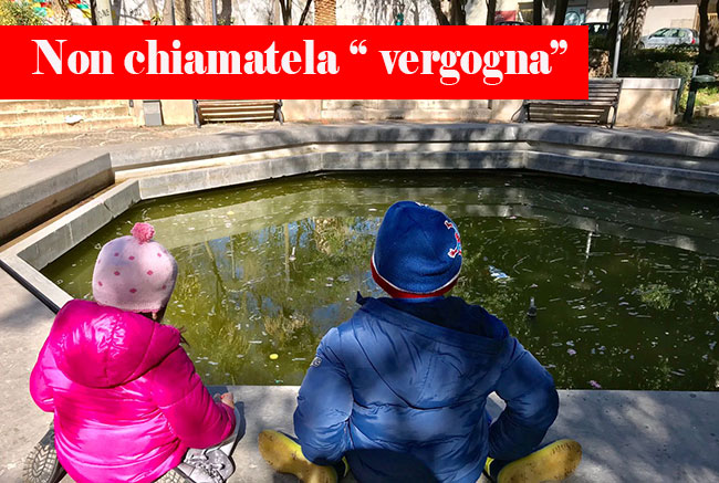 Ricordate quando era stata riaperta questa fontana all’interno della villa comunale? Sembrava che si fosse riaperta la fontana di Trevi, noi stessi a fare il plauso per la riapertura di questa che è poco più di una vasca. Guardate come è ridotta. Un fogna a cielo aperto dove scorazzano i bambini. Ci chiediamo come l’ufficiale sanitario non intervenga. Se questa vasca fosse in un esercizio commerciale di un privato, avrebbero già arrestato il proprietario. E’ una vergogna… anzi è molto di più. Provate a spiegare ai vostri bambini cosa ci fa una latrina a posto di una vasca per pesci rossi. Dato che adesso ci sono assessori di nuova nomina belli freschi e pimpanti… dite loro che si sbrighino a fare togliere questo schifo da sotto gli occhi dei bambini e dato che non si è capaci di manutenderla, di proteggerla, perchè abbiamo le telecamere finte… “levateci le mani,” risvuotatela che è meglio…. Ora ci chiediamo se non si è in grado di gestire una vasca per i pesci rossi si può pensare di guidare il Titanic? Questa è una domanda attenzione… solo una domanda. Si può fare?
