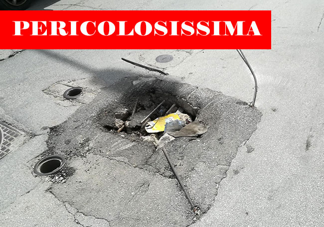 Ci è arrivata una segnalazione con foto abbastanza inquietante. Si tratta di una buca dalla quale fuoriescono tondini di ferro pronti a maciullare la gamba dello sfortunato che ci finirà dentro, nella migliore delle ipotesi spaccate un copertone. Noi giriamo la segnalazione a chi se ne dovrebbe occupare, anche se riteniamo che una via trafficata come la via Barone Lombardo, non dovremmo essere noi a segnalare questo pericolo .. comunque sia facciamo anche questo