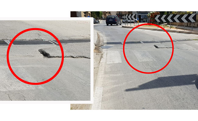 Chi è quel canicattinese che muovendosi in auto o in moto non passa almeno un paio di volte al giorno dal luogo ritratto nella foto? Siamo nella famosa rotatoria di via On Giglia. In prossimità del negozio di fiori Diana, quindi in prossimità della rotatoria stessa dove vi è uno scalino enorme, inevitabile, che ha già scassato diversi cerchioni e diversi pneumatici. Ora considerando che i tecnici addetti percorreranno una strada alternativa e quindi non si sono mai potuti accorgere di tale pericolo , chiediamo: quale strada percorrete per non accorgervi di un scalino di oltre 10 cm che mette a repentaglio la sicurezza e l’incolumità di chi vi transita? Ma tecnicamente qual è il modo per fare finta di non vedere dato che questo problema risale all’apertura della stessa rotatoria? Sempre tecnicamente, dopo quanti copertoni e auto danneggiate scatta il vostro intervento tecnico?… Ora dopo questo articolo …. pronti via……