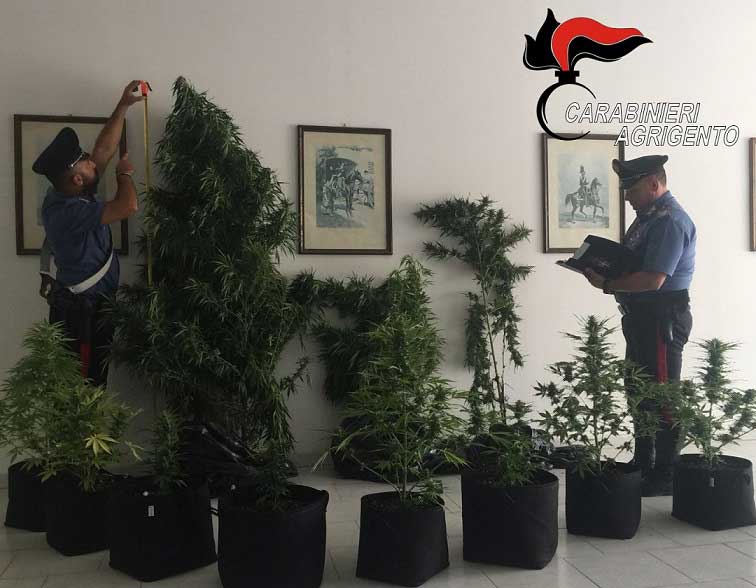 Sarebbe stato un buon raccolto “fai da te”, quello che i Carabinieri hanno scoperto a Canicattì nelle ultime ore. Infatti, nel corso di un servizio investigativo, i militari dell’Arma sono giunti a scoprire una vera e propria coltivazione “fai da te” grazie alle informazioni raccolte nell’ambito del controllo del territorio. I Carabinieri, da qualche tempo, avevano notato movimenti anomali nelle vicinanze dell’abitazione di un trentenne canicattinese e così hanno deciso di fare scattare un’irruzione nell’immobile in questione e nell’annesso giardino, dove è stato subito rintracciato l’individuo su cui ricadevano i sospetti, già noto alle forze dell’ordine. Poco dopo aver iniziato la perquisizione, nel giardino di casa, è saltata fuori una vera e propria piantagione con varie piante di “canapa indiana”, che una volta essiccata, sarebbe stata pronta all’uso. Al termine delle operazioni di perquisizione, le piante di “Marijuana” complessivamente sequestrate, sono risultate del peso di circa due chili e mezzo. Per l’individuo, 30 enne del posto, sono subito scattate le manette ai polsi con l’accusa di “Coltivazione e detenzione ai fini di spaccio di sostanze stupefacenti”. L’Autorità Giudiziaria ha disposto che l’uomo venga ristretto agli arresti domiciliari, in attesa dell’udienza di convalida. Si stima che il quantitativo di droga sequestrato, smerciato al dettaglio, avrebbe potuto fruttare alcune centinaia di euro.