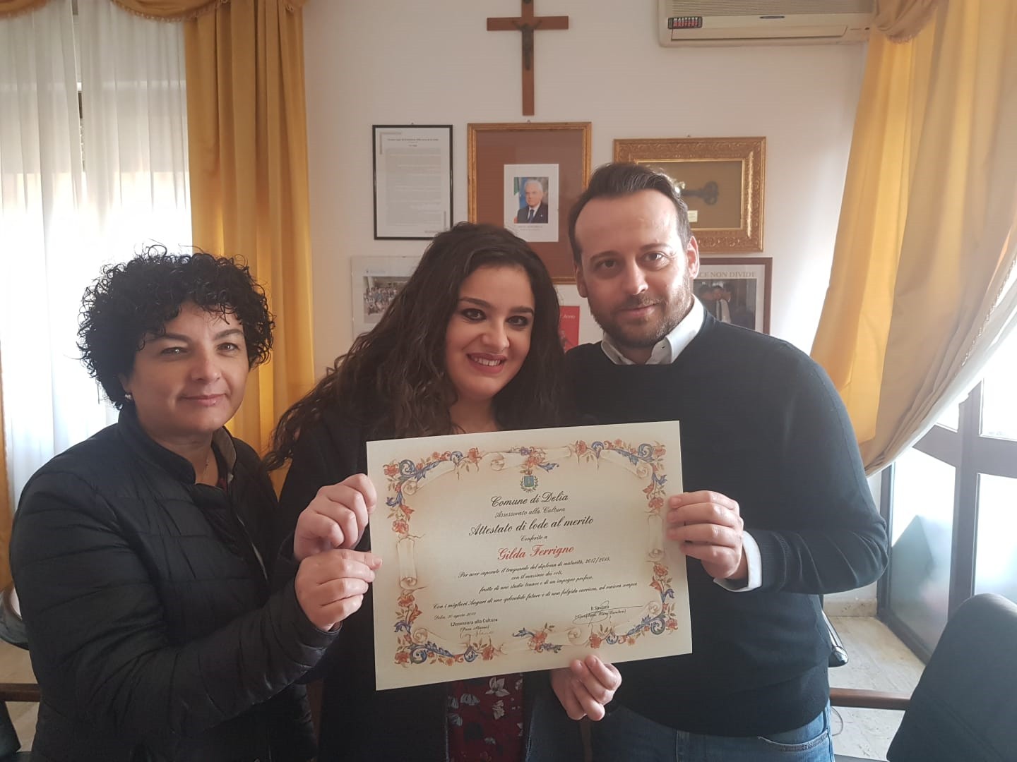 il sindaco Gianfilippo Bancheri ha conferito il terzo attestato di “lode al merito”, riservato dall’amministrazione comunale agli studenti residenti a Delia che hanno conseguono il diploma di maturità con il massimo dei voti.