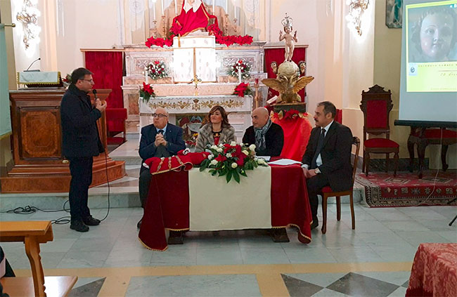 Ieri 28 dicembre u.s., presso la parrocchia San Domenico di Canicattì, il Club delle mamme, presieduto dalla dott.ssa Loredana Lodato ha donato al Bambinello di capodanno un vestito rosso come vuole la tradizione. La cerimonia è stata preceduta da un convegno moderato dal direttore di canicattiweb Cesare Sciabarrà con due relatori di eccezione: lo storico Prof. Gaetano Augello che ha parlato della devozione dei baroni La Lomia a Gesù Bambino di Capodanno e l’architetto Muratore che ha illustrato alla platea le caratteristiche artistiche della scultura lignea del Bagnasco. A fare gli onori di casa è stato il parroco Don Salvatore Casà che dopo la vestizione ha benedetto il prezioso dono mentre il Dott. Tino Di Naro ha deposto la corona sul capo della statua come rappresentante della famiglia Di Naro che dopo i baroni La Lomia ha perpetuato questa antica e bella tradizione canicattinese. In chiesa erano presenti numerosi fedeli e le socie del club delle mamme, tutti hanno potuto ammirare alcuni oggetti della devozione ”a lu Bamminu” donati come ex voto e tutti i vestiti che ormai da due secoli vengono offerti al simulacro del bambinello.