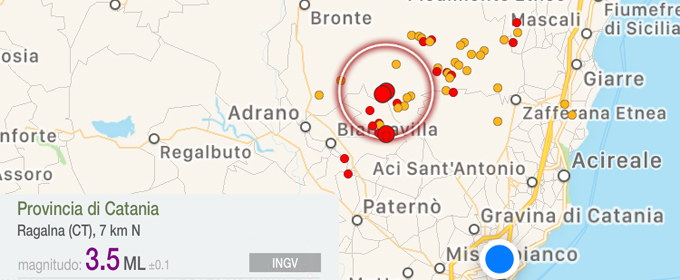 Un terremoto di magnitudo 3.5 è stato registrato dall’Istituto Nazionale di geofisica e vulcanologia nel Catanese. La scossa è avvenuta alle 5.10 con epicentro a 7 km da Ragalna. Nella notte sono state diverse le scosse registrate sempre nella stessa zona: sette nelle scorse sette ore, con una magnitudo tra 2.3 e 3.0.
