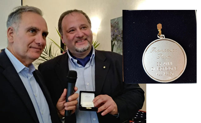 “Ho conosciuto Francesco all’inizio della sua carriera – ha sottolineato il Presidente Francese prima di consegnare la medaglia – e mi ha colpito per la grande curiosità. Ha fatto strada da allora e oggi è una risorsa anche per i nostri corsi di formazione permanente”.