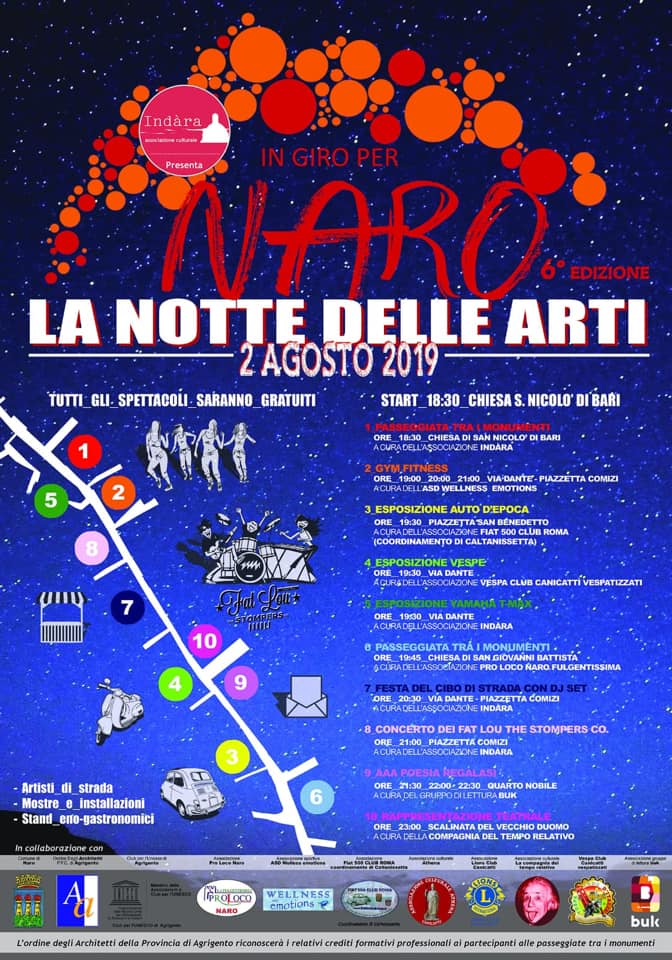 Torniamo ad animare la nostra città con “La notte delle arti 2019 – In giro per Naro”. Appuntamento per