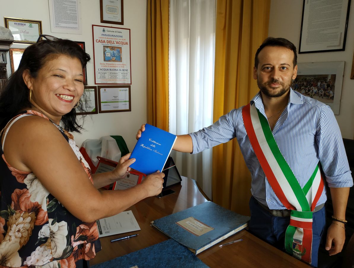 <<Sono lieto di aver messo la mia firma sull’atto ufficiale di conferimento della cittadinanza ad Alisia, una persona meravigliosa, lavoratrice infaticabile. La cittadinanza che abbiamo conferito oggi è il segno che Delia è una cittadina dove si vive a misura d’uomo. Nel suo piccolo è un intreccio di popoli, una cittadina multiculturale, che offre solidarietà e accoglienza – ha detto Gianfilippo Bancheri. Mi spiego così – ha aggiunto – le tante richieste di cittadinanza che abbiamo ricevuto negli ultimi anni. La gente ama vivere qui. Ed oggi l’ho letto sul viso raggiante di Alisia e di Carlos, suo marito. Un emozione toccante, che ci commuove e ci fa sentire tanto orgogliosi. Auguri Alisia>>.