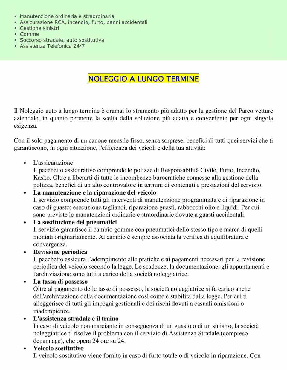 Una volta effettuate le valutazioni preliminari si procederà a concordare, insieme alla società di noleggio, i servizi che dovranno essere inclusi all’interno delle rate mensili, come: manutenzione ordinaria, tagliandi, macchina di sostituzione, ecc.