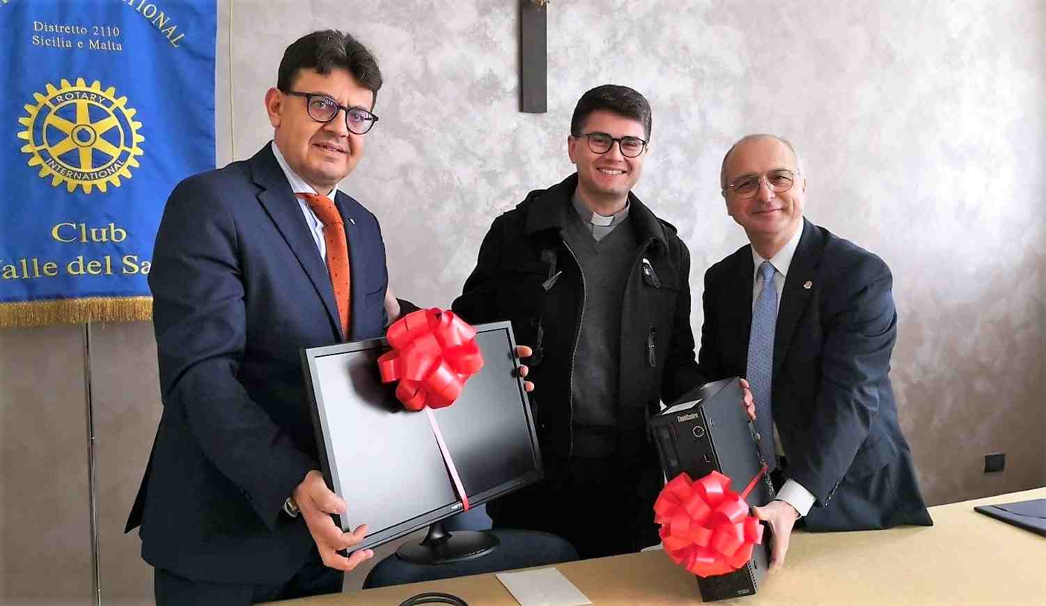 Alla Cerimonia era presente Don Lino De Luca, Parroco, il dott. Luigi Loggia presidente del Rotary ed Eugenio Salvaggio amministratore della “PA Digitale Sicilia srl” sponsor della donazione del pc.