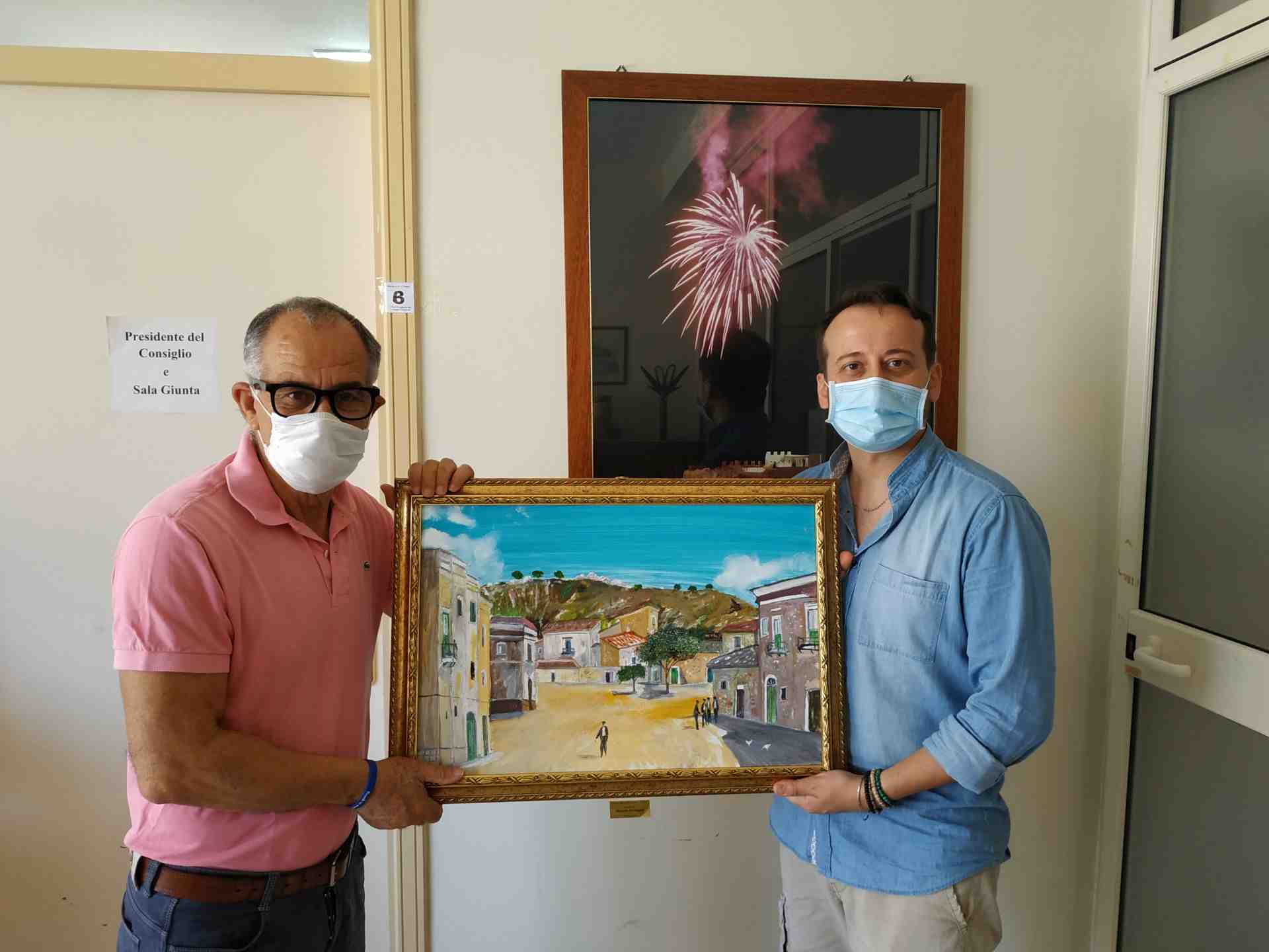 Il pittore deliano Marcello Occhipinti ha donato un suo quadro al sindaco Gianilippo Bancheri.