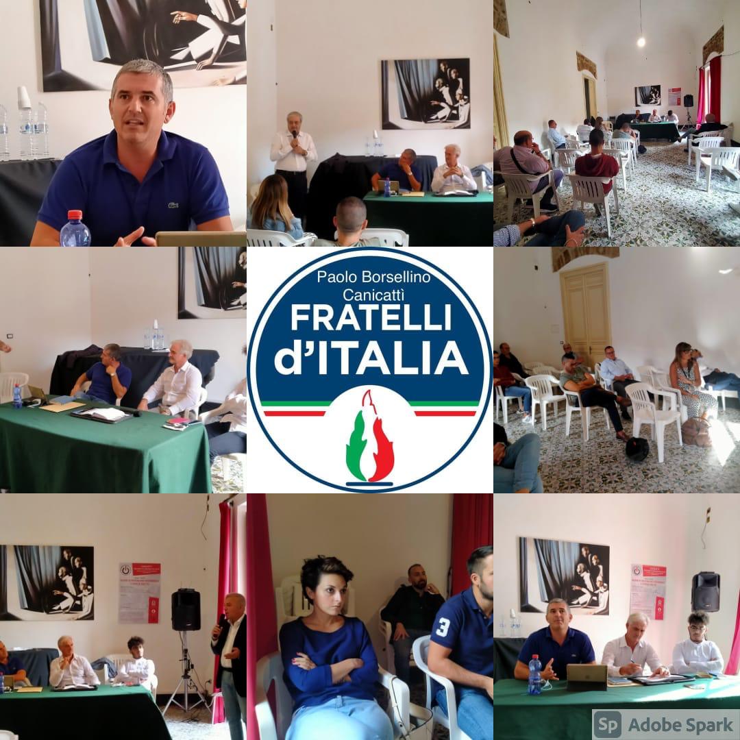 Riunito il direttivo di Fratelli d’Italia Canicattì. Presso la sede dell’Associazione “Athena ” di Canicattì si è riunito il direttivo e i dipartimenti del circolo di FDI “Paolo Borsellino”. Nel corso dell’incontro, presenziato e moderato dal presidente Gero Drago, si sono gettate le basi per un’approfondita analisi delle problematiche della nostra città e degli impegni futuri. Gradita è stata la partecipazione di un gruppo di rappresentanti di Fiamma tricolore. A suggellare l’incontro è stato il caloroso saluto del Presidente di “Athena” AVV. Giovanni Salvaggio.