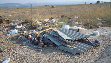 Rifiuti sparsi ovunque, ingombranti, materiale di risulta, eternit, pneumatici, erbacce, manto stradale dissestato, questo è lo scenario. Una vera e propria discarica a cielo aperto che aumenta a dismisura di giorno in giorno.