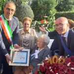 Nella foto il sindaco Franco Badalamenti, la centenaria Francesca Graci ed il presidente del consiglio comunale Salvatore Graci