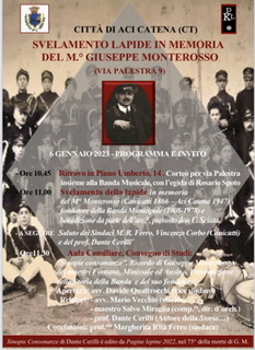 Il sindaco *Corbo* di *Canicattì* con il sindaco di Acireale Stefano Alì lo commemoreranno insieme alla sindaca di Aci Catena *Margherita Rita Ferro* e il professor Dante Cerilli Monterosso promotore della riscoperta e rivalutazione dell’artista di Canicattì, apprezzato in Italia e all’estero. Venerdì 6 gennaio alle ora 11,00 sarà scoperta una lapide commemorativa e ci sarà un convengo di studi con la partecipazione dello storico *Mario Vecchio*, del direttore d’orchestra, compositore, *Salvo Miraglia*, e *Davide Quattrocchi* , amministratore-vicesindaco