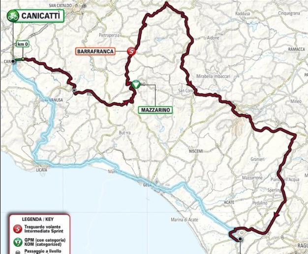 Quella odierna si preannuncia come una tappa molto articolata con una lunga sequenza di curve e saliscendi che terminano a circa 20 km dalla linea di arrivo. Pochi gli attraversamenti cittadini tutti caratterizzati dalla presenza di rotatorie e spartitraffico. Le strade sono prevalentemente larghe e ben pavimentate. Finale dopo Comiso pianeggiante.