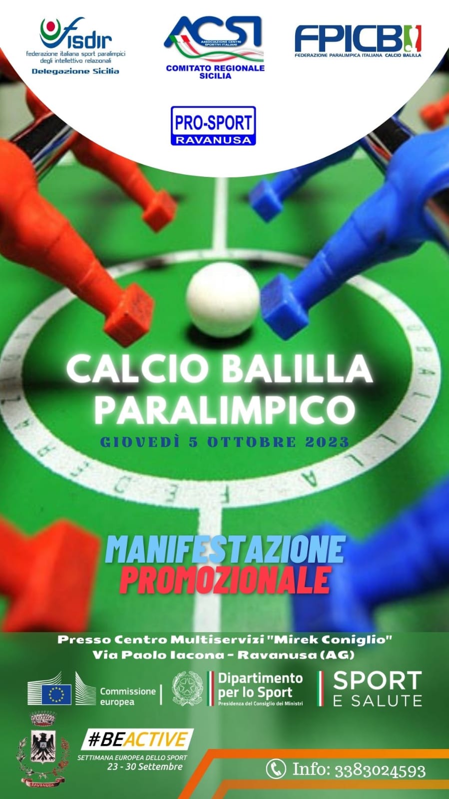 La manifestazione organizzata dalla Pro Sport Ravanusa sotto l’egida della FPICB (Federazione Paralimpica Italiana di Calcio Balilla) e con il patrocinio dell’ACSI Sicilia e della FISDIR Sicilia, si svolgerà a Ravanusa Giovedì 5 Ottobre a partire dalle 16 presso appunto il Centro Multiservizi in Via Paolo Iacona, per l’occasione sarà riservata sia agli atleti tesserati FPICB sia aperta a tutti, questo per far si che la conoscenza del Calcio Balilla Paralimpico sia più ampia possibile.