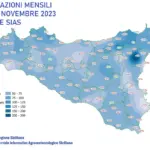 “La fase piovosa – continua il documento – non ha permesso di recuperare del tutto il deficit di precipitazioni mensili accumulato nel mese. Così che sulla rete Sias la maggior parte delle stazioni continua a far registrare scarti negativi significativi rispetto alla norma del periodo, arrivando anche a deficit di oltre il 70% in alcune aree del settore ionico. Sono invece piuttosto localizzati i casi in cui le precipitazioni mensili sono state superiori alla norma del mese di novembre. Tra le stazioni Sias il massimo accumulo mensile risulta registrato dalla stazione Linguaglossa Etna Nord con 262 millimetri, valore tuttavia sospetto e che per la convalida attende una verifica del pluviometro presso la stazione. Il massimo accumulo mensile successivo è stato registrato dalla stazione Cesarò Monte Soro con 140 millimetri”.