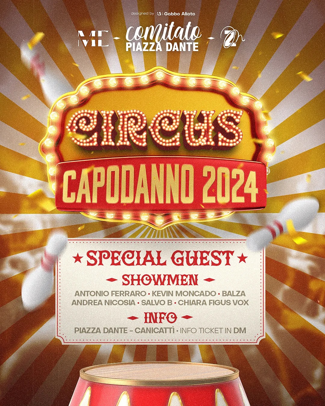 La notte del 31 dicembre, Piazza Dante si prepara ad essere invasa da una folla entusiasta, pronta a festeggiare l’arrivo del nuovo anno in uno scenario unico. Il palco ospiterà DJ Set e Showman di grande caratura, tra cui A. Ferraro, Kevin Moncado, Balza, Andrea Nicosia, Salvo B, e Chiara Figus Vox. Questi talentuosi artisti trasformeranno la piazza in un vero e proprio festival a tema circus, con scenografie uniche ed esclusive che promettono uno spettacolo visivo straordinario.