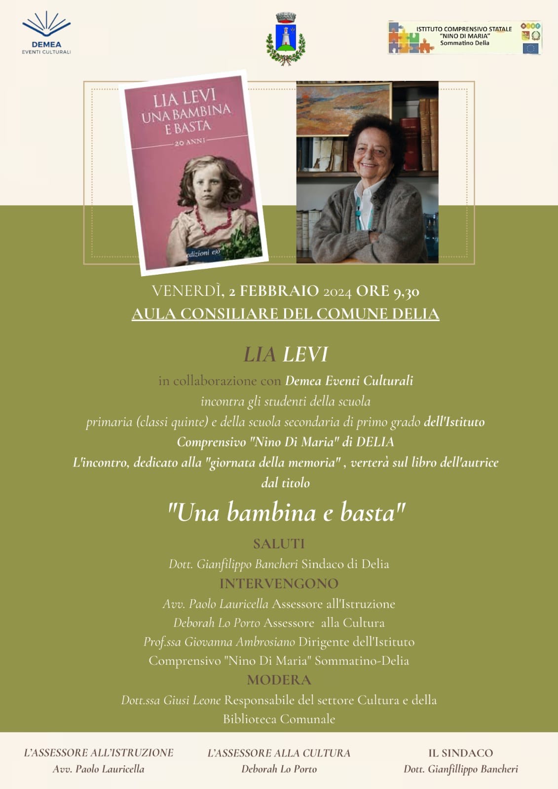 . Sensibile al tema del rispetto della persona e al principio di uguaglianza, l’Amministrazione Comunale, per il Giorno della Memoria, in ricordo dello sterminio e delle persecuzione del popolo ebraico e dei deportati militari e politici italiani nei campi nazisti, venerdì 2 febbraio, alle ore 9:30, ospiterà presso l’Aula Consiliare la scrittrice Lia Levi, la quale ha testimoniato la sua esperienza di bambina vittima delle persecuzioni razziali nel suo primo romanzo “Una bambina e basta”, pubblicato nel 1994 e vincitore di prestigiosi premi. “Anche quest’anno, come da sempre, l’amministrazione comunale ha voluto celebrare adeguatamente il Giorno della Memoria. Lo ha fatto negli anni sempre con un’interazione, in sinergia con la scuola, rendendo partecipi i ragazzi attraverso la consegna di vari libri, come il libro su Anna Frank, l’edizione tascabile della Costituzione Italiana e la consegna del libro di Primo Levi – Se questo è un uomo e adesso abbiamo voluto fare un salto di qualità invitando proprio qui la scrittrice, la quale incontrerà i ragazzi delle scuole che si sono preparati a questo incontro leggendo il libro e preparando vari lavori, vari elaborati, con i propri insegnanti” – dice l’assessore all’istruzione Paolo Lauricella. La scrittrice di questo libro, libro che è alla sua ventesima edizione, incontrerà i ragazzi delle classi quinte della scuola primaria e di tutte le classi della scuola secondaria di I grado, raccontando la propria esperienze e interloquendo con i ragazzi, i quali sentono e vivo sempre in modo particolare il periodo in cui cade il Giorno della Memoria. L’assessore alla Cultura Deborah Lo Porto: “Sarà sicuramente un momento importante questo di incontro a tu per tu tra i ragazzi e la Sig.ra Lia Levi. Un momento nel quale la scrittrice si racconterà, consegnando a tutti la testimonianza cruda dell’esperienza terribile vissuta sulla propria pelle. Ed è proprio attraverso il racconto, questa piccola arma, alle nuove generazioni che si perpetua la memoria di quegli anni atroci, anni passati, ma che si ripropongono anche oggi seppure in forme diverse. Basta pensare ai recenti scontri in Ucraina, a Gaza e in altre realtà del mondo. Mi auguro, e, anzi, sono sicura, che la cultura e la memoria perpetuata, raccontata, tramandata dalle vecchie alle nuove generazioni, specialmente in prima persona da chi ha vissuto tutto sulla propria pelle, sia la vera arma affinché gli errori del passato non vengano commessi nuovamente nel futuro”. Per l’amministrazione Bancheri è un orgoglio ospitare l’autrice Lia Levi, per dare testimonianza sempre più attiva e viva del ricordo e della memoria.