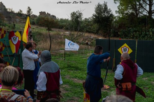 Presenti per l’occasione il Maestro d’Arco Edy Tricoli, il Maestro d’Arco Antonino Sutera Sardo e il Direttore e Maestro d’Arco Andrea Tricoli (referente nazionale ASI settore rievocazioni storiche) che hanno permesso di far scoccare ben oltre mille frecce.