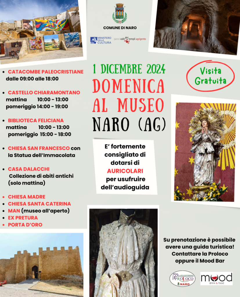 In questa giornata, i visitatori avranno l’opportunità di scoprire gratuitamente i principali tesori storici e culturali di Naro. Tra i luoghi di interesse aperti per l’occasione si segnalano: