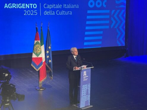 «Agrigento, con l’isola di Lampedusa e i comuni della provincia, ha assunto come ispirazione, riferimento tematico e obiettivo di questo anno la relazione fra l’individuo, il prossimo e la natura, ponendo come fulcro l’accoglienza e la mobilità. Il programma delle iniziative presentato a un pubblico nazionale e internazionale è di grande interesse. Partendo dalla straordinaria eredità culturale del territorio, infatti, valorizza una variegata offerta culturale, nella quale tradizione, intersezioni e contaminazioni culturali consentono di definire una dimensione innovativa che guarda con fiducia allo sviluppo socio-economico che, con fatica ma con determinazione, la Sicilia ha già avviato». E’ questo uno dei passaggi centrali del saluto del presidente della Regione Siciliana, Renato Schifani, nella cerimonia di apertura di Agrigento Capitale italiana della Cultura 2025, che si è svolta al Teatro Pirandello, alla presenza del Presidente della Repubblica, Sergio Mattarella, del ministro della Cultura, Alessandro Giuli, del presidente dell’Ars, Gaetano Galvagno, del sindaco di Agrigento, Francesco Miccichè, del commissario straordinario del Libero Consorzio di Agrigento, Giovanni Bologna e di tutte le autorità locali.