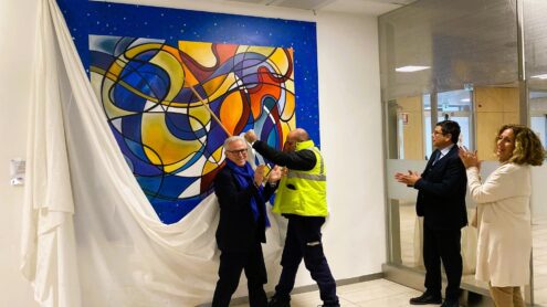 È stata svelata nella zona Imbarchi dell’aeroporto Vincenzo Florio di Trapani Birgi, davanti al gate numero 9, la tela “II tocco dei Mille”, realizzata e donata dall’artista e architetto mazarese, Gerry Bianco. Presenti all’avvenimento, oltre all’artista il presidente di Airgest, Salvatore Ombra e Francesco Foggia dell’Associazione di volontariato Unac che ha realizzato, a Mazara del Vallo, sul lungomare Mazzini, la Festa del Pane e della Pasta, Spring Edition 2024, in occasione della quale mille commensali hanno lasciato, letteralmente, la propria impronta in una fascia attorno all’opera, grande tre metri per due. Anche il presidente Ombra ha apposto nel retro della tela la sua firma, insieme a quella di Bianco e degli altri mille partecipanti.