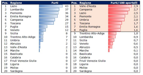 “A livello territoriale, il maggior numero di episodi si è verificato nel Lazio dove gli episodi sono più che raddoppiati rispetto al 2022 passando da 20 a 43. Seguono la Lombardia con 37 furti, il Piemonte con 36 e l’Emilia-Romagna con 34. La Sicilia in questa triste classifica si trova al nono posto con 8 colpi (nel 2022 era al tredicesimo con un solo furto).