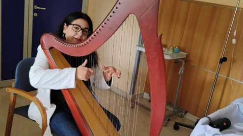 Nell’Hospice Garibaldi Nesima, le note del suono dolce di un’Arpa diventano carezze invisibili, abbracci sonori che accompagnano i pazienti nel loro ultimo viaggio. E Loredana, con il suo talento e la sua sensibilità, continua ogni giorno a ricordare che anche quando la vita si spegne, la musica può ancora accendere un’emozione. Loredana entra nelle stanze con il suo strumento, il sorriso discreto di chi sa di camminare su un terreno delicato. Si siede accanto ai pazienti e li ascolta. La sua terapia inizia nel silenzio, nel rispetto delle emozioni di chi ha di fronte. Poi, con dolcezza, lascia che la musica prenda il sopravvento. Una paziente di 50 anni – racconta Loredana – chiede spesso di usare in sottofondo i suoni della natura attinenti all’acqua: il mare, la pioggia, i ruscelli. Ascolto il suo respiro, cerco di entrare in sintonia con le sue emozioni ed il suo dolore. Lei, durante la seduta, sussurra che è bellissimo e sorride ad occhi chiusi come se le stessi massaggiando l’anima. Non è solo una questione emotiva.