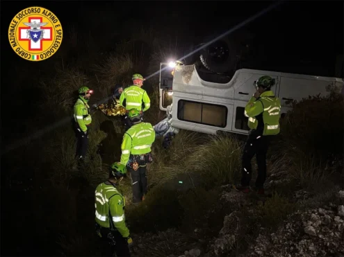 Intervento in notturna del Soccorso Alpino e Speleologico Siciliano a Montelepre per una coppia di turisti tedeschi finiti in una scarpata con il loro fuoristrada Land Rover Defender camperizzato. I due, un uomo di 40 anni e una donna di 34, stavano percorrendo una strada sterrata nella zona di Montagnalonga, tra Carini e Montelepre, alla ricerca di un posto dove accamparsi. Ma percorrendo strade sterrate sono finiti in un tratto particolarmente impervio e impercorribile. Nel tentativo di superare la zona piena di buche e profonde pozzanghere, con la donna che cercava di guidare a piedi il compagno rimasto al volante, il mezzo è finito fuori strada, volando per una decina di metri e capottando.