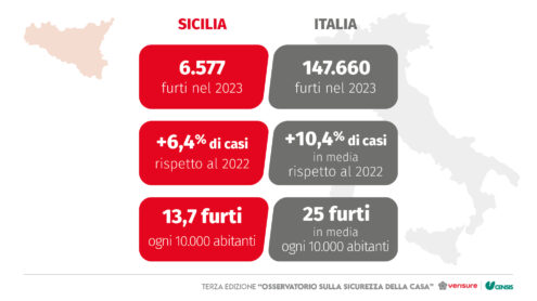L’Indice di Sicurezza Domestica , elaborato da Censis e Verisure, evidenzia inoltre alcune criticità: con un punteggio di 92,2/100, inferiore alla media italiana di 100/100, la Sicilia si posiziona al diciottesimo posto nella classifica nazionale, perdendo quattro posizioni rispetto al 2022. Un dato che segnala la necessità di maggiori investimenti per migliorare la qualità e la sicurezza delle infrastrutture abitative nella regione.