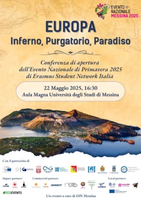 Un’Europa attraversata simbolicamente con gli occhi di Dante. È questo il tema della conferenza “Europa: Inferno, Purgatorio, Paradiso”, in programma giovedì 22 alle ore 16.30 presso l’Aula Magna del Rettorato dell’Università degli Studi di Messina. La conferenza inaugura ufficialmente l’Evento Nazionale 2025 di Erasmus Student Network Italia, che si terrà dal 23 al 26 maggio presso l’Isola di Vulcano e coinvolgerà circa 1000 studenti Erasmus da tutto il mondo, con l’obiettivo di valorizzare il patrimonio culturale e naturalistico delle Isole Eolie e lasciare un ricordo indelebile per gli studenti al termine del loro periodo di mobilità.
