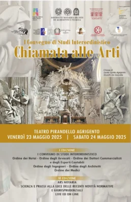 Aperto alla cittadinanza ed organizzato dall’Ordine provinciale dei Notai, presieduto dal notaio Claudia Gucciardo e che ne costituisce l’Ordine promotore, si svolgerà ad Agrigento, presso il Teatro Pirandello, il Primo Convegno interordinistico, in programma il 24 maggio 2025, alle ore 9.00, che vede dialoganti plurimi Ordini professionali (Notai, Avvocati, Commercialisti, Ingegneri, Architetti e Medici). Sinergicamente insieme per realizzare quella coesione sociale, tanto a cuore al Presidente della Repubblica Sergio Mattarella che, nel suo discorso di inaugurazione di Agrigento Capitale della Cultura 2025, ha invitato a procedere insieme, a rigenerare coesione, a ricomporre le varie componenti della società. Anche il Papa Leone XIV ha invitato al dialogo ed alla creazione di ponti.