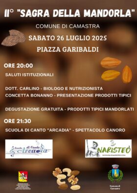 Il Comune di Camastra, con il finanziamento dell’Assessorato regionale dell’Agricoltura, dello Sviluppo Rurale e della Pesca Mediterranea, è lieto di annunciare la seconda edizione della Sagra di la Miennula Camastrisa, in programma sabato 26 luglio 2025, a partire dalle ore 20:00 in Piazza Garibaldi.