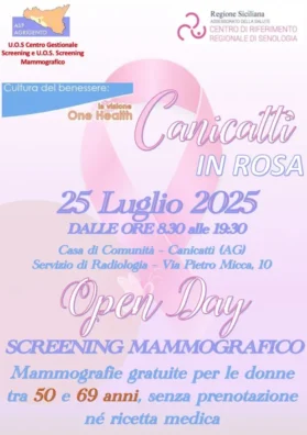 Le azioni, fanno sapere dall’ASP di Agrigento, non si fermano e, nonostante lo sforzo organizzativo che coinvolge le equipe sanitarie e lo staff amministrativo, già doggi sarà la volta di un nuovo open day a Canicattì presso la sede della Casa della Comunità sita in via Pietro Micca al civico 10. Anche in questa occasione per l’intera giornata, dalle ore 8.30 sino alle 19.30, si potrà eseguire il test mammografico accedendo liberamente ai servizi di radiologia. Le azioni di open day itineranti, va detto, sono comunque integrative rispetto a quelle ordinarie e calendarizzate dal Centro Gestionale Screening ASP che, fra le diverse linee di attività, invita costantemente, con lettere recapitate a casa sull’intero territorio provinciale, tutta la popolazione target ad eseguire i controlli che, va ribadito, sono sempre gratuiti e non solo in occasione degli open day. Anche a Canicattì ci si aspetta una grande partecipazione e, chissà, forse un nuovo record di adesioni in questa singolare “gara” fra i comuni interessati dal programma straordinario.