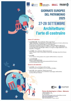 Il tema dell’edizione 2025 è “Architetture: l’arte di costruire” ed è la traduzione di “Heritage and Architecture: Windows to the Past, Doors to the Future”, lo slogan scelto dal Consiglio d’Europa e condiviso dagli Stati aderenti alla manifestazione. È un invito a riflettere sul valore culturale del paesaggio costruito che ci circonda e un’opportunità per riscoprire l’architettura come espressione viva della storia, della cultura e delle aspirazioni delle comunità, italiane ed europee. A tal proposito sono previste due conferenze tenute dagli architetti Enrico Caruso ed Antonio Mauro. La prima vedrà approfondito il tema del riuso delle architetture tradizionali, con particolare attenzione al Baglio Anselmi, sede del Museo; la seconda vedrà, invece, trattato il rapporto tra l’architettura e il paesaggio nell’antichità (quest’ultima attività sarà accreditata all’Ordine degli architetti di Trapani con due crediti formativi professionali).