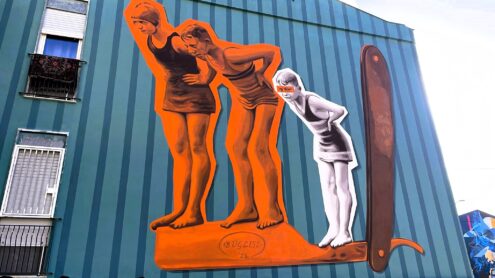 Il quartiere Maria Ausiliatrice di Alcamo sta vivendo una vera e propria metamorfosi grazie al progetto di Ri-Generazione urbana “Urban Sunrise”. L’iniziativa, promossa dal Comune di Alcamo con il supporto di fondi PNRR, è curata per la parte artistica dall’associazione Sperone167 ETS e per la parte architettonica dallo studio di architettura Garbo di Alcamo. Il quartiere è diventato un laboratorio di rigenerazione sociale e culturale, dove l’arte pubblica assieme ai progetti di riqualificazione urbana sono un potente strumento di cambiamento, che non riguarda solo l’aspetto estetico del quartiere, ma anche la creazione di nuove relazioni sociali e la costruzione di un forte senso di comunità. Urban Sunrise dimostra come l’arte, l’architettura, la cultura e l’impegno civico attraverso le Giornate FAI per la scuole interagiscano per creare cambiamento, rinnovando gli spazi urbani e generando processi di crescita condivisa. I lavori di Andrea Buglisi, Medianeras, NeSpoon e Kitsune hanno già trasformato il volto del quartiere, portando colore, bellezza e riflessione sulle pareti degli edifici. Ma, come sottolineato dai promotori del progetto, questi interventi non sono solo murales: sono veri e propri atti di relazione, realizzati attraverso il dialogo con gli abitanti e con il pieno coinvolgimento della comunità. Un elemento che ha reso questi lavori particolarmente significativi è stato il coinvolgimento attivo delle famiglie, dei bambini e delle bambine, che hanno partecipato alla realizzazione delle opere. La dimensione collettiva di queste azioni ha rafforzato i legami tra i residenti, creando nuove forme di appartenenza e solidarietà.