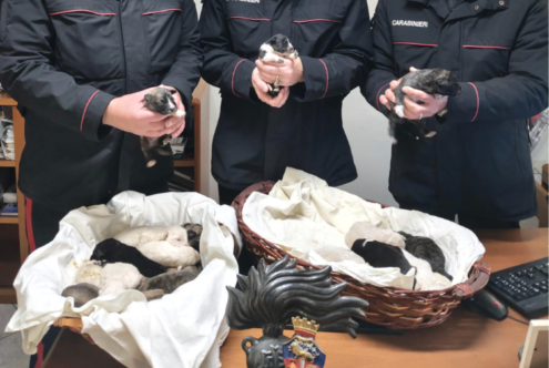 Una volta risaliti all’intestatario dell’auto e all’indirizzo dell’abitazione, il tempestivo intervento dei Carabinieri ha consentito di rinvenire e prendere temporaneamente in custodia i 18 cuccioli; in buono stato di salute, ma bisognosi di cure e assistenza, sono stati affidati ad un’associazione di volontariato.