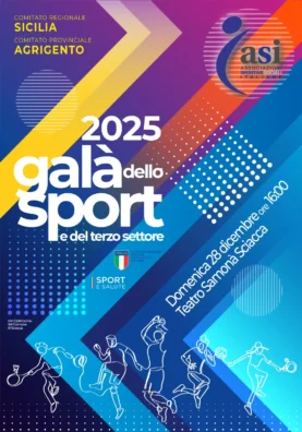 Tutto pronto per il “Galà dello Sport e del Terzo Settore Asi 2025”, l’appuntamento annuale promosso dal Comitato Provinciale Asi di Agrigento con il patrocinio del Comitato Regionale Sicilia. La cerimonia si terrà domenica 28 dicembre alle ore 16 al “Teatro Popolare” di Sciacca e vedrà la consegna dei riconoscimenti a società, atleti e dirigenti che si sono distinti nelle attività sportive, culturali e sociali svolte nel corso dell’anno.