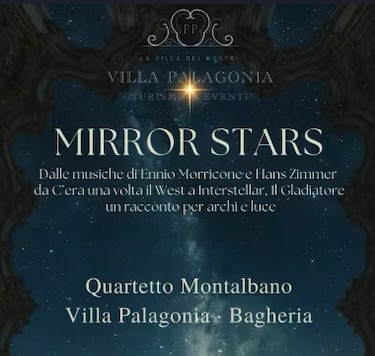 L’evento, dal titolo “Mirror Stars”, è concepito come un racconto multisensoriale: le proiezioni sul soffitto accompagneranno ogni brano, trasformando la Sala degli Specchi in uno spazio scenico tridimensionale, dove il pubblico vivrà il concerto come dentro un film.