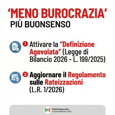 Il Partito Democratico locale sollecita l’amministrazione comunale a intervenire con tempestività su due fronti normativi introdotti di recente a livello nazionale e regionale, per alleggerire il carico burocratico sui contribuenti e migliorare la riscossione dei tributi senza penalizzare eccessivamente famiglie e imprese.