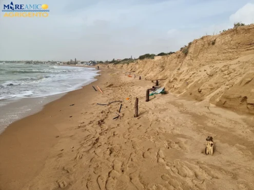 La forte mareggiata dei giorni scorsi ha scavato le dune ed ha portato alla luce i resti di un vecchio chiosco a San Leone. Questa la segnalazione dell’associazione Mareamico che invita, per il futuro, “la Capitaneria di porto, l’ufficio del demanio e il comune, dopo la cessazione della concessione demaniale, a controllare che i lavori di ripristino delle spiagge vengano effettuati a regola d’arte, al fine di non trovare più queste sorprese nascoste sotto la sabbia e di rilasciare le nuove concessioni, solo dopo che il richiedente abbia versato una adeguata somma come cauzione, per poter permettere il ripristino ambientale dei luoghi, qualora il concessionario fosse inadempiente”.