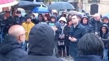 ScreenshotNonostante il maltempo un centinaio di persone hanno partecipato, questa mattina, al collegamento in diretta da piazza san Domenico della trasmissione Mattino 5, su Mediaset, per parlare della crisi idrica che sta interessando la città.